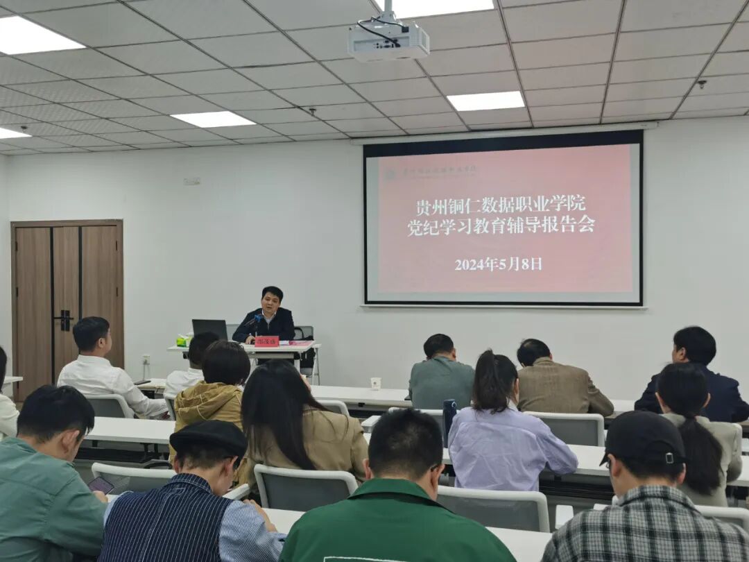 为深入学习贯彻席大大总书记关于党纪学习教育的重要讲话精神,落实上级关于开展党纪学习教育的决策部署,扎实推进党纪学习教育走深走实,持续提升全校教职工和党员干部纪律规矩意识,根据学校党纪学习教育计划安排,5月8日下午,学校在图书馆一楼会议室举行了党纪学习教育专题辅导讲座,特邀请铜仁市纪委监委笫三监督检查室主任邵茂盛为我校教职工及党员干部作报告。学校党总支书记肖洪涛,党总支副书记、校长黄士安、纪检委员龙文勇及部分在家领导出席;全校党员和没课教职工参加会议。讲座由纪检委员龙文勇主持。