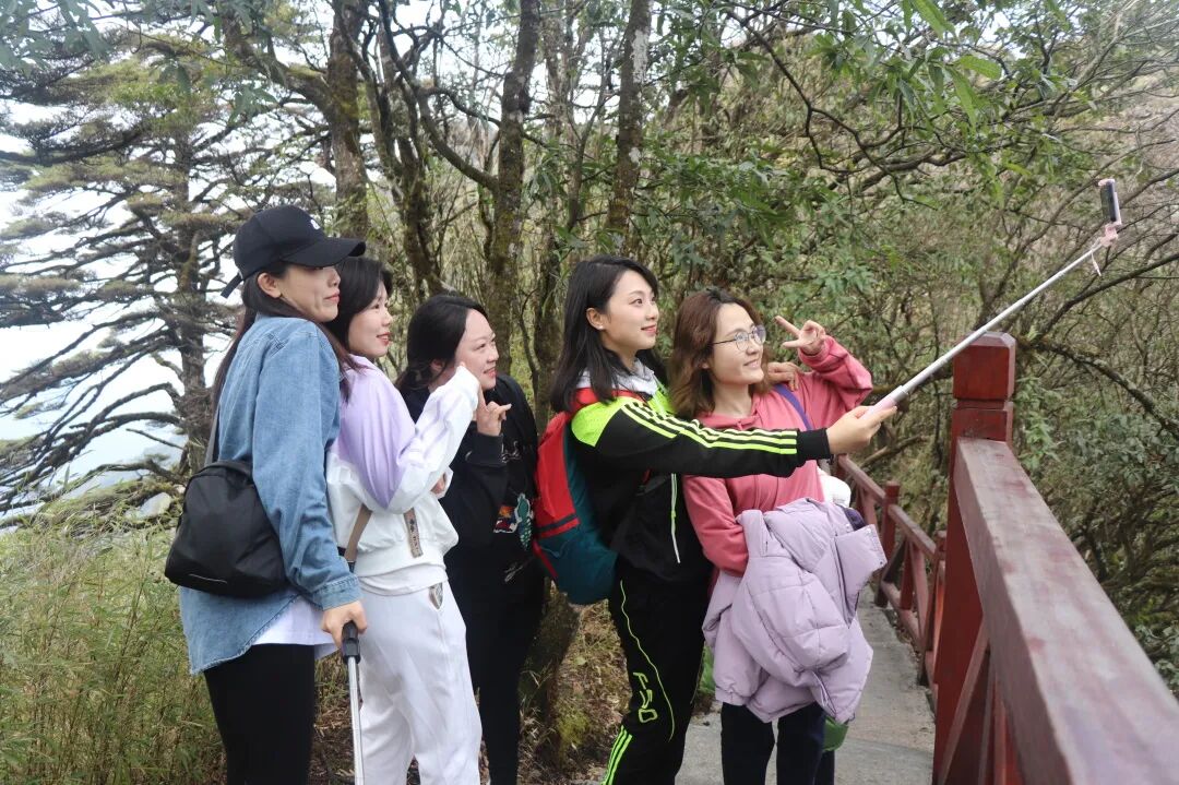 阳春二三月,百花待放,草长莺飞。3月11日,Ag亚洲集团集团(贵州)组织数据学校、天都地产全体女员工开展3.8户外徒步活动,相聚梵净山,领略“梵天净土”,打卡 “天空之城”。